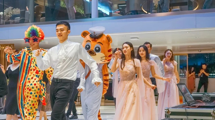 ❥全体船员参演的歌舞晚会,激情四射的真情献艺,穿插着游客们的互动活动,整个氛围轻松、舒适,让您真正的放松身心。